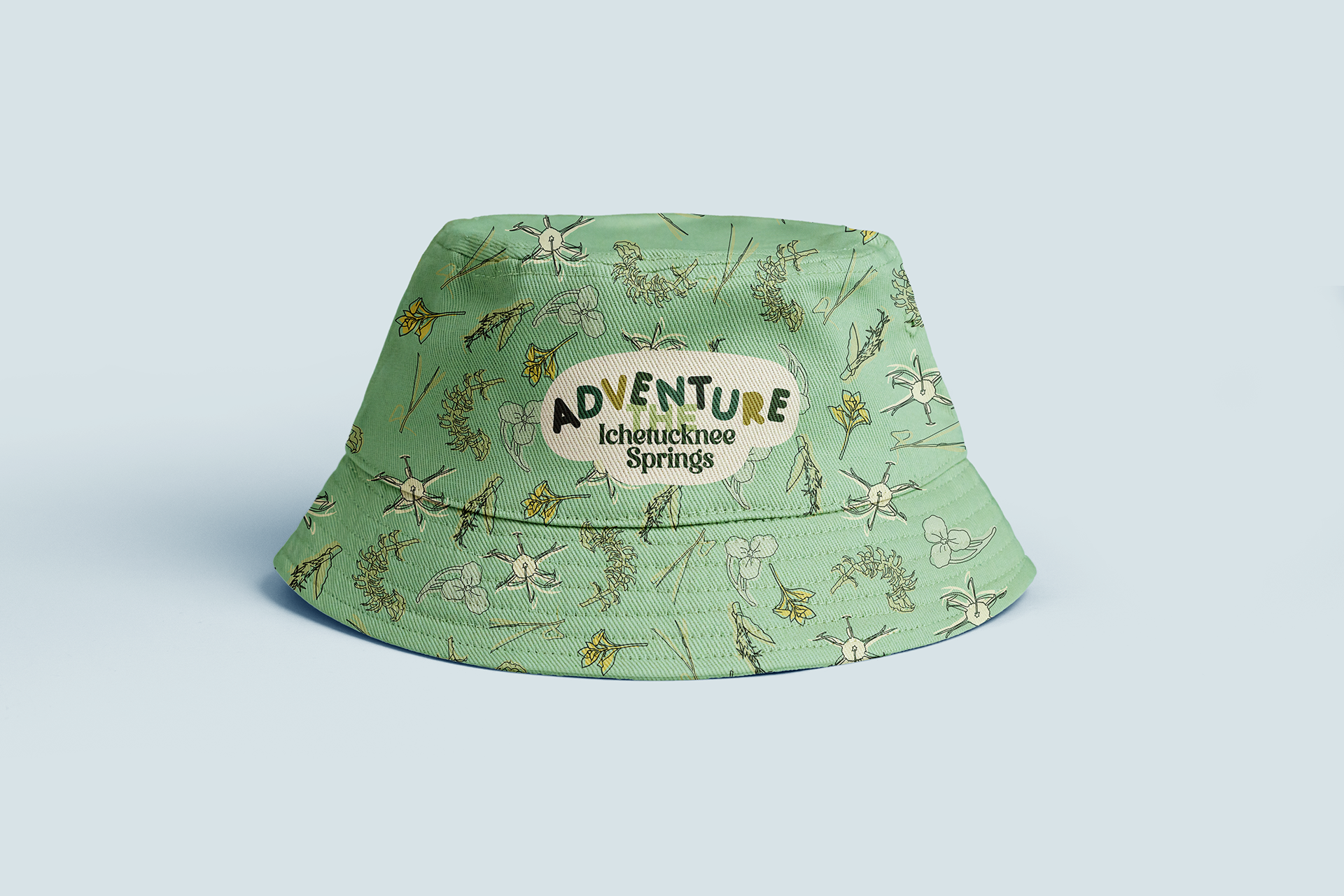 Final merchandise designs which include a variety of items including, sweatshirts, bucket hats, tote bags, buttons, stickers, and merchandise tags.